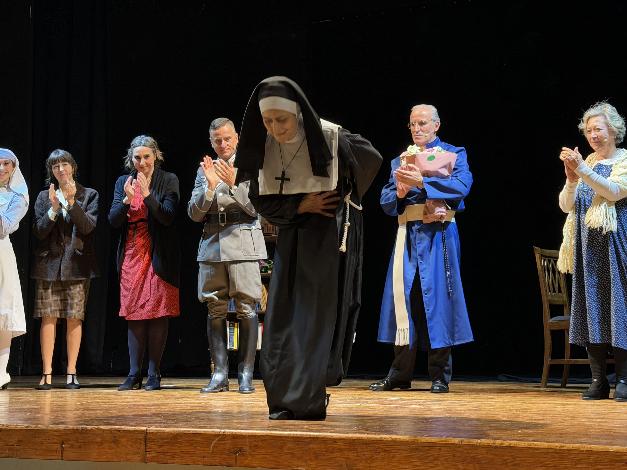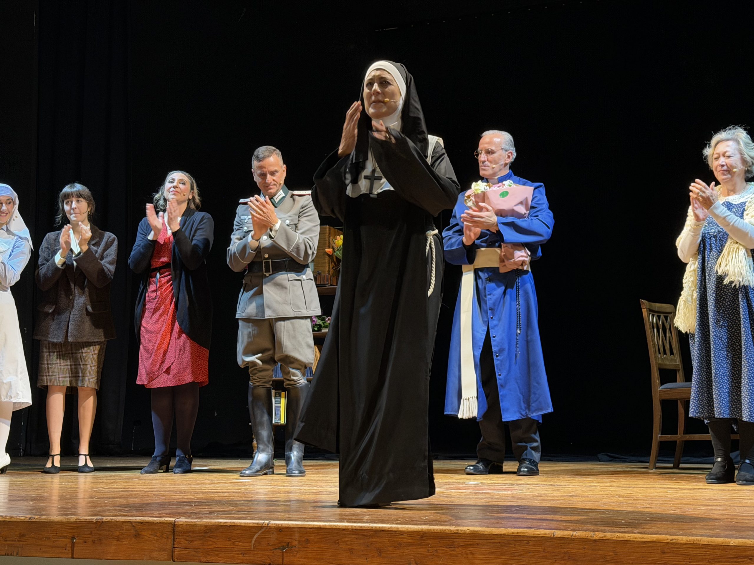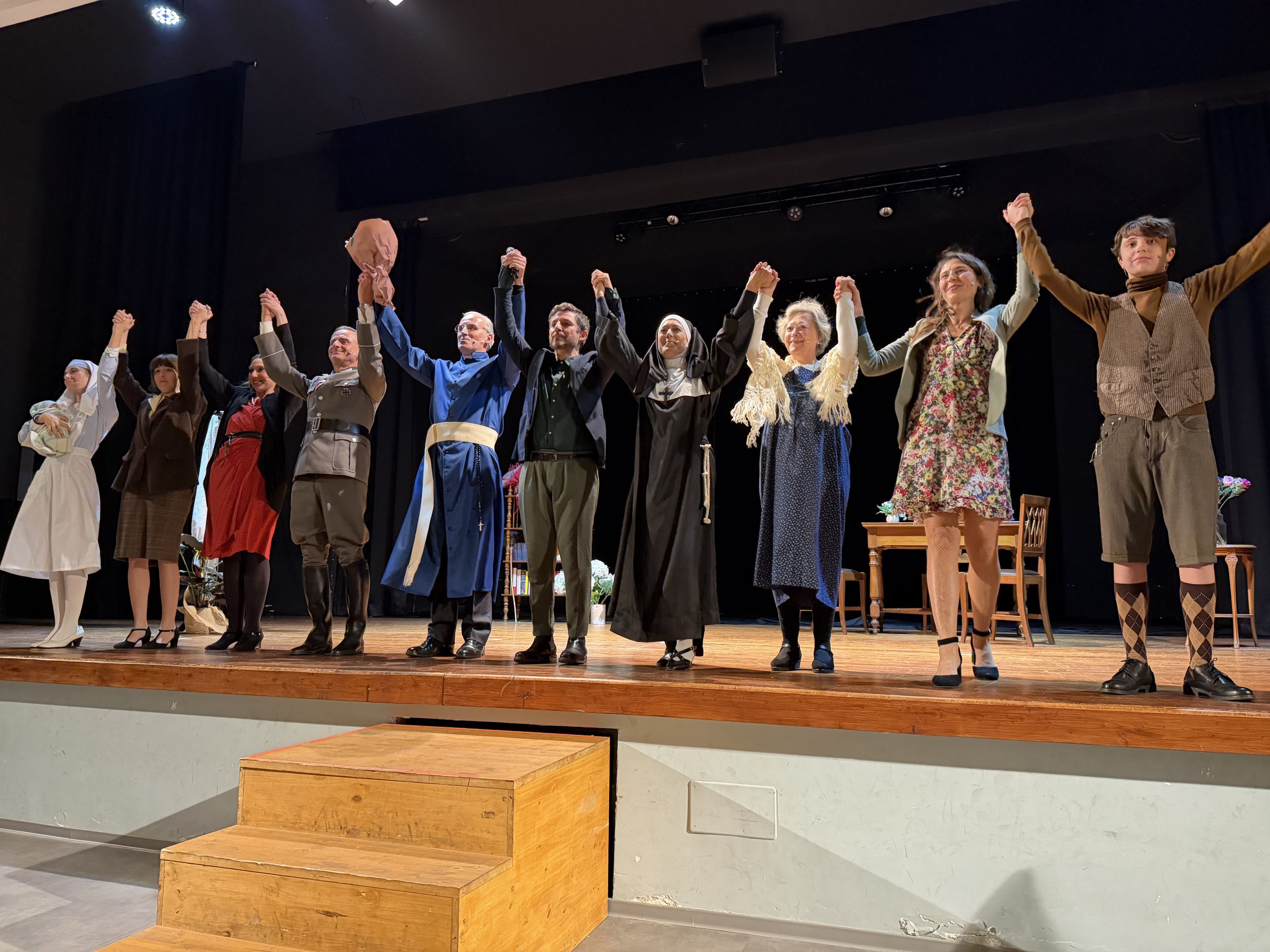 Lo spettacolo teatrale si incentra prevalentemente sul periodo della Seconda guerra mondiale, in cui Fratel Stablum, insieme ai confratelli, si distinse per il suo eroico impegno di carità. Tra il 1943 e il 1944 aprì le porte dell’IDI a perseguitati politici ed ebrei, salvando dalla deportazione oltre 100 persone, tra cui 52 ebrei, nascondendoli all’interno dell’ospedale, travestendoli da pazienti e in alcuni casi anche da religiosi. Questo gesto di eroismo, testimoniato da tanti sopravvissuti, gli valse nel 2011 l’onorificenza di «Giusto fra le Nazioni» da parte dello Yad Vashem di Gerusalemme. La vita e l’opera di Fratel Stablum sono state portate in scena con grande intensità dagli attori: attraverso le due rappresentazioni teatrali, il pubblico ha potuto percepire come Stablum fosse capace di unire fede e professionalità, mostrando attenzione costante al prossimo. L’impegno degli interpreti ha reso evidente il valore della sua vita di integrità morale e dedizione al servizio degli altri, esempio ancora oggi per tutta la comunità dell’IDI e per quanti si dedicano alla cura dei malati. Dal 16 marzo 2000 la salma di Fratel Stablum è stata traslata nella chiesa dell’Istituto Dermopatico dell’Immacolata, e il 24 aprile 2021 Papa Francesco ha autorizzato la promulgazione del decreto con cui venne dichiarato Venerabile, riconoscendo pubblicamente la santità della sua vita. Con “La lettera”, l’Associazione Amici di Padre Monti, ha voluto celebrare non solo la figura professionale e religiosa di Fratel Stablum, ma anche il suo spirito di servizio, dedizione e amore verso gli altri, sull’esempio di Padre Monti, Fondatore della Congregazione dei Figli dell’Immacolata Concezione. In verità, di Padre Monti Stablum fu appassionato studioso e ammiratore, promuovendone la conoscenza e divulgandone lo spirito di totale dedizione a servizio degli infermi. Lo spettacolo ha visto il pubblico numeroso partecipare a un momento di riflessione e memoria, confermando l’importanza di trasmettere la storia e l’eredità di chi ha dedicato la propria vita al bene degli altri. Oltre all’autrice del testo (Anna Maria Angrisani) e al regista, Carlo Liccardo, particolare menzione meritano anche gli altri protagonisti della scena: